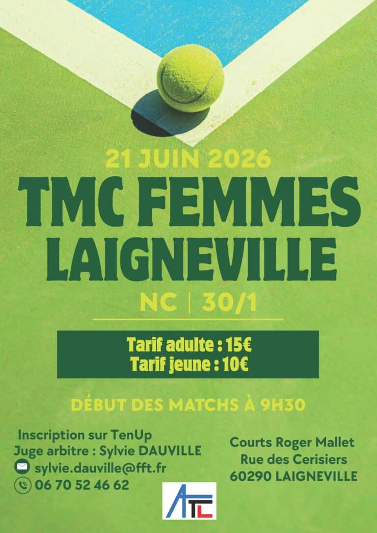 L’Association de Tennis de Laigneville organise un TMC Dames 4ème Série le 21 juin prochain.