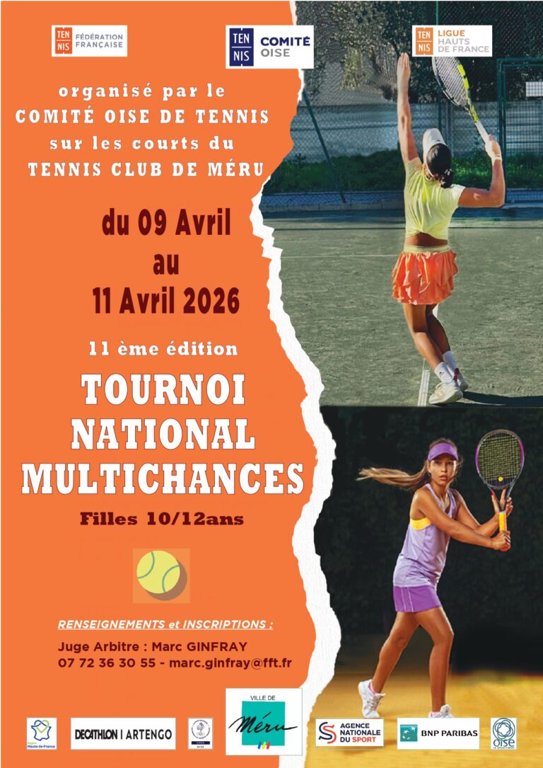 Le comité organise un tournoi national multichances 10/12 ans filles, qui se déroulera du 9 au 11 avril sur les courts du TC Méru.