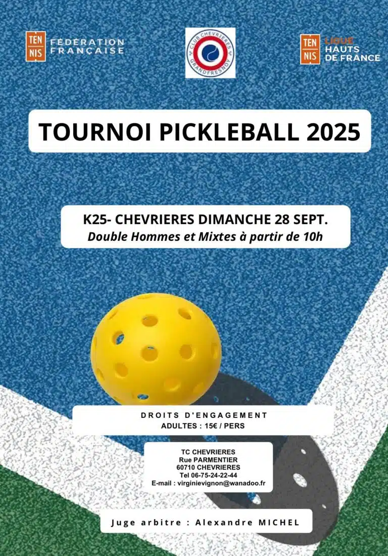 Le club de Chevrières organise un K25 de pickleball le 28 septembre, à partir de 10h.
