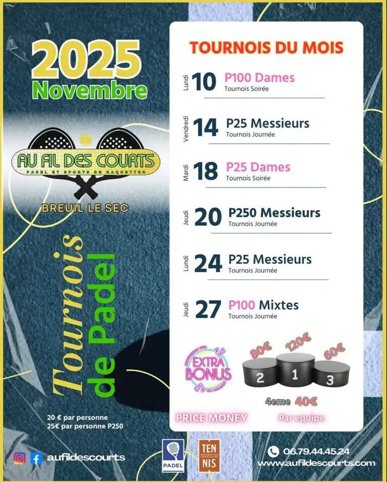 Au Fil Des Courts organise en novembre : un P100 dames, des P25 messieurs, un P25 dames, un P250 messieurs et un P100 mixtes.